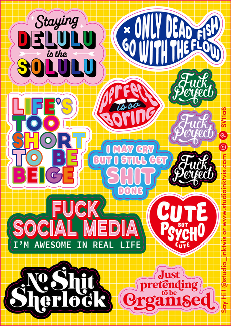 Bold and colorful Quote Life's too short, I may cry sticker sheet
